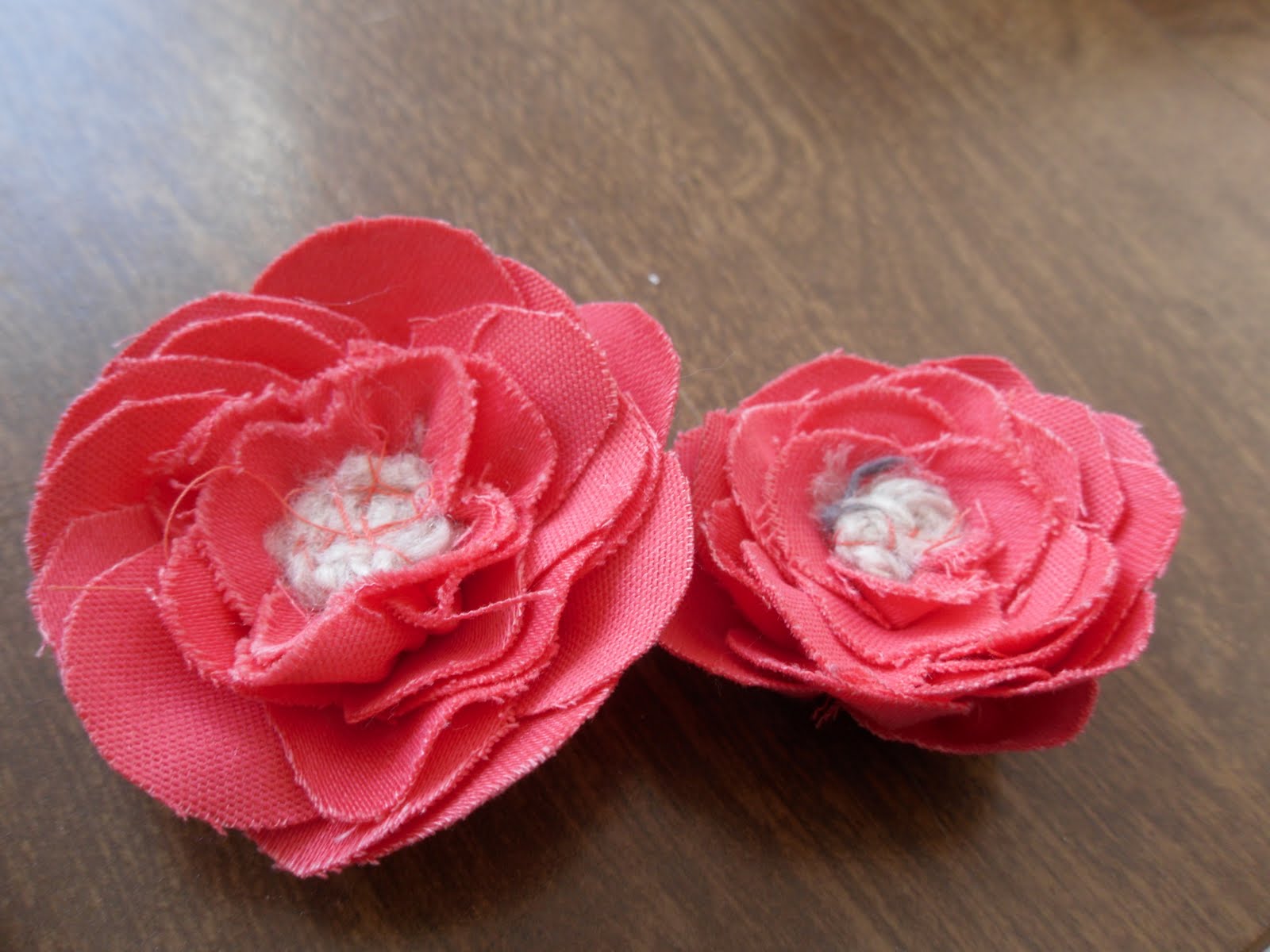 So this past Friday was my official last day of classes (hooray!), and though I still have exams this week, I took a little break over the weekend to soak up the amazing (AMAZING!) weather and work on a few wedding-related projects. I'm not sure if we've broached the topic of flowers yet, but I do plan on making fabric flowers for my bouquet and for various other applications. I guess it depends on how well it goes. I can totally imagine freaking out at the eleventh hour and running to Wegmans to buy fresh, overpriced grocery store flowers. But in the hopes of avoiding that moment, I spent a couple hours Saturday afternoon looking up tutorials and messing around with the scraps of fabric I've collected from sewing bridesmaids dresses. Long story short, here's what I came up with: